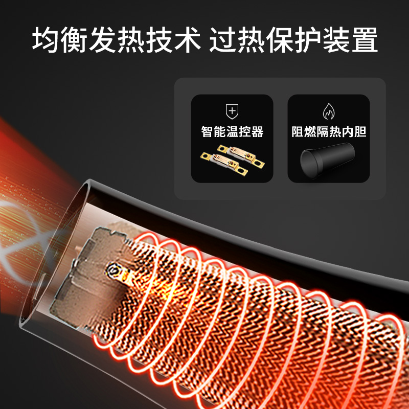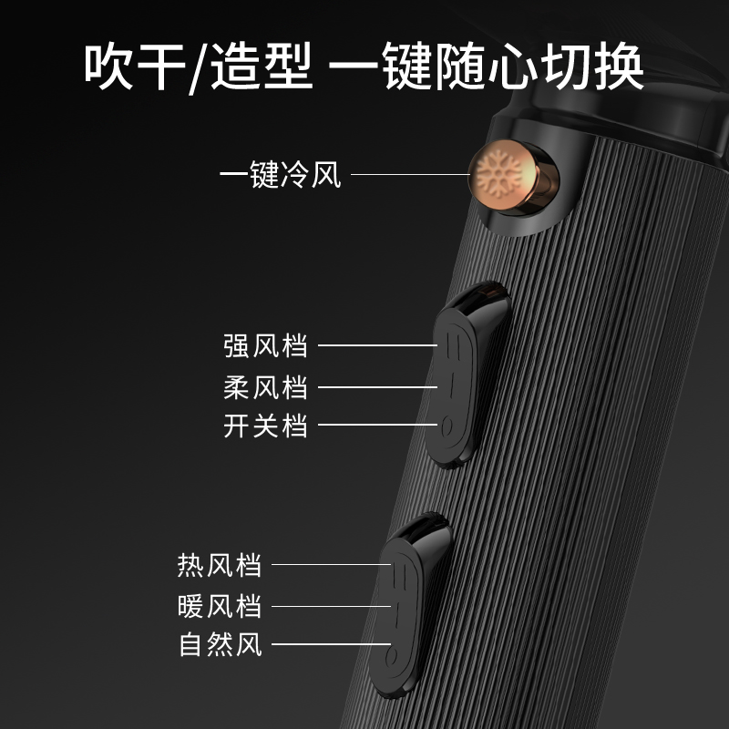 特点:AC马达大功率大风力+多档位调节+蓝光设计+热量均衡+一键冷风+过热保护装置+防尘进风罩