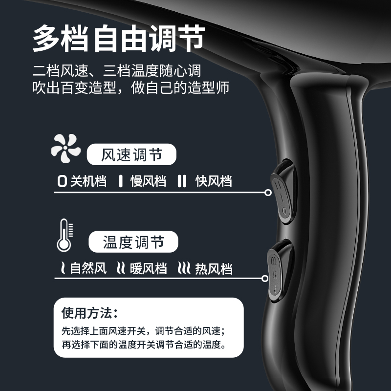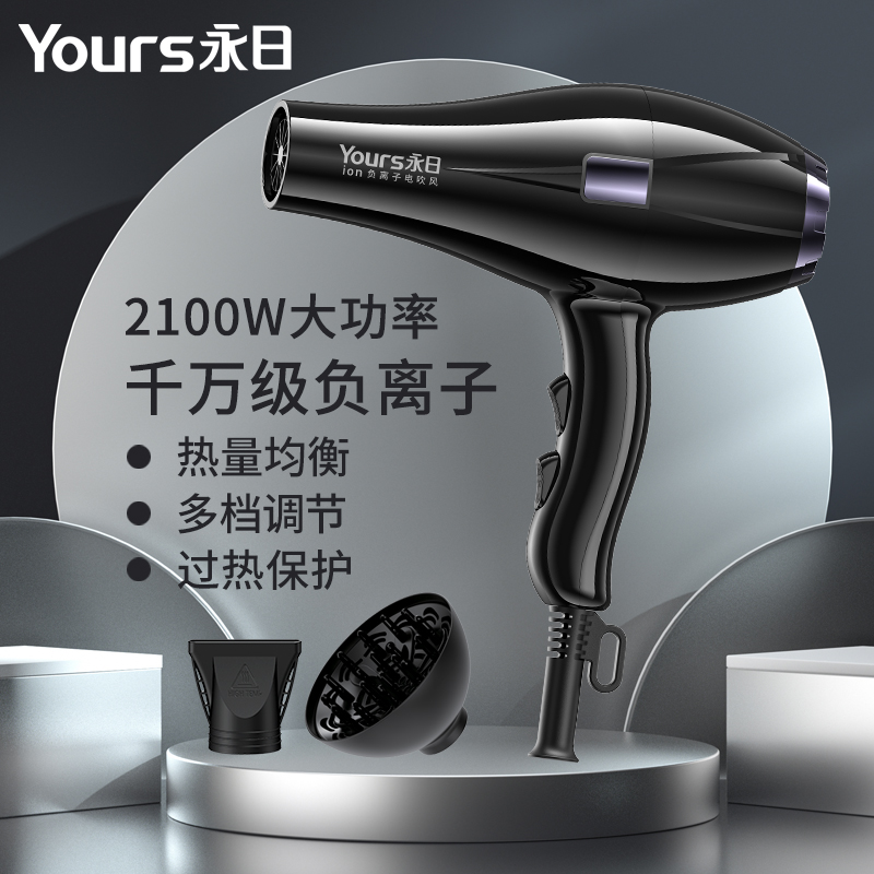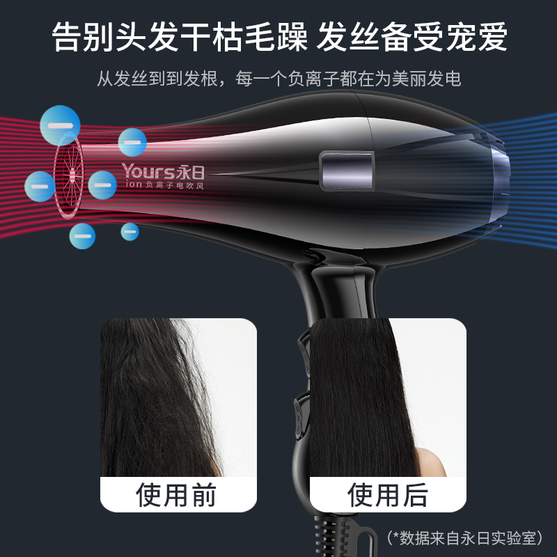 特点:炫酷蓝光设计+过热保护装置+负离子功能+永日自研电机+热量均衡