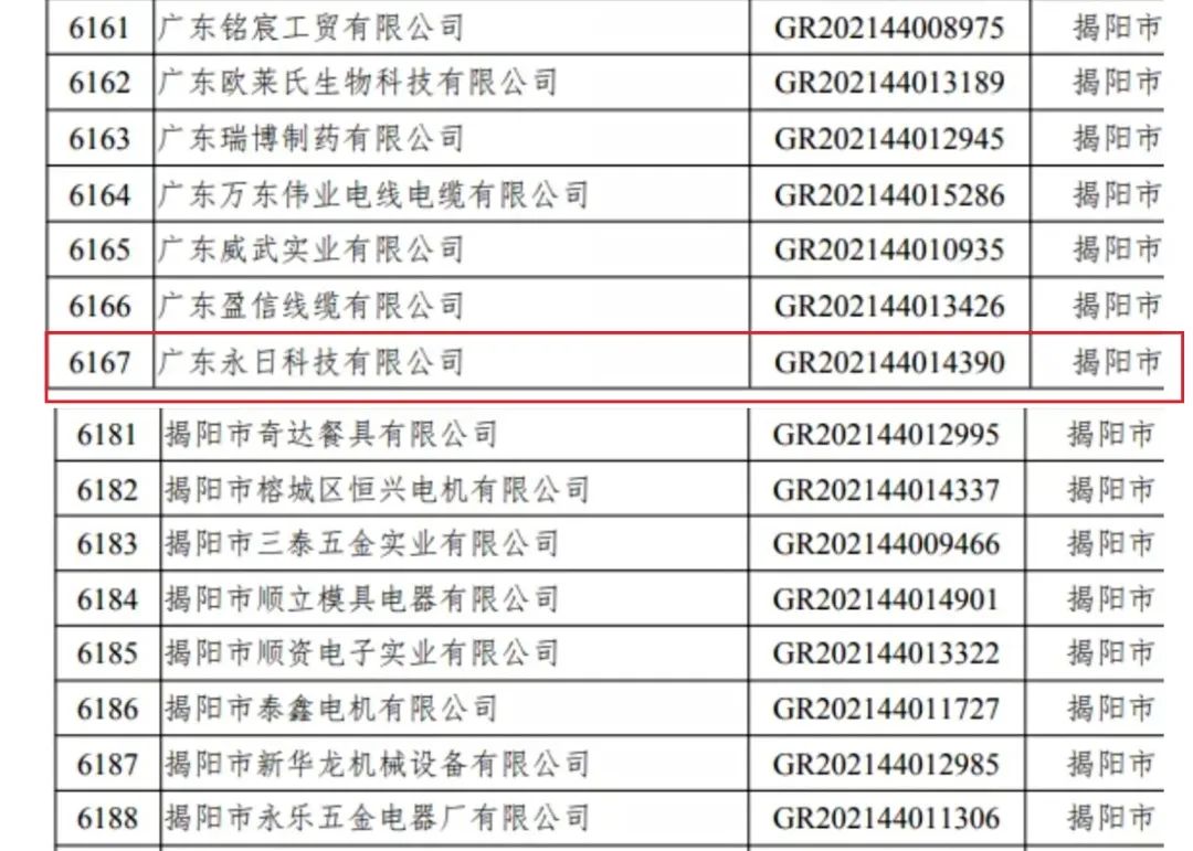近日,广东省科学技术厅、广东省财政厅、国家税务局广东省税务局公布了2021年高新技术企业名单。广东永日科技有限公司再次成功入选。