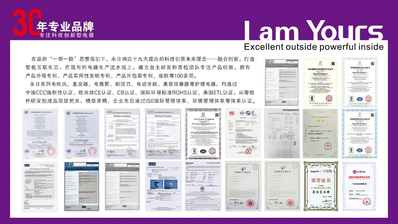 从上世纪80年代,组装生产第一台电吹风起,公司历经数十年不断调整产业链,实现产业配套的完善,将原来的传统工厂升级为广东永日科技有限公司,现已发展成为一家集电吹风、剃须刀、直发器、电推剪、电动牙刷、人体测温枪等产品的研发、生产、销售为一体的国家高新技术企业,产品线超过200种,拥有100多项知识产权专利及体系认证。